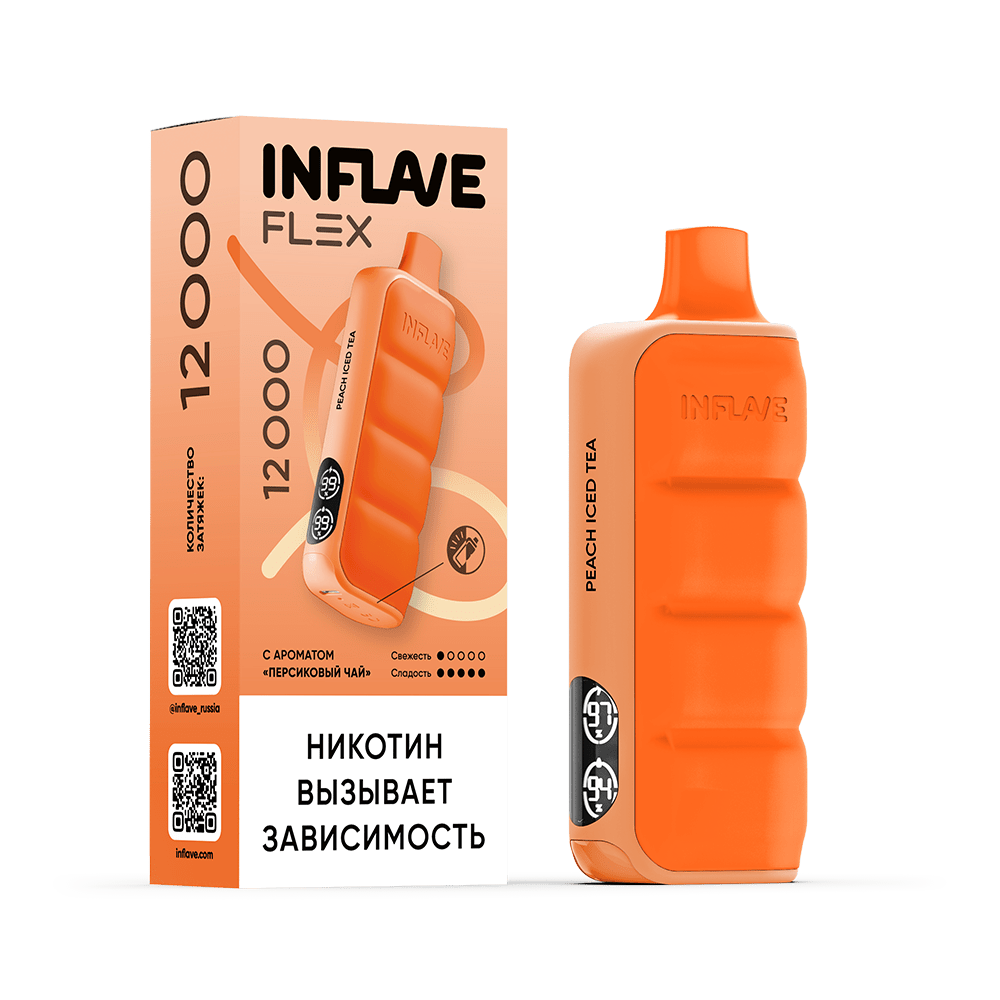 Количество затяжек, шт12000 | Крепость, %2 | ЛинейкаINFLAVE FLEX 12000 |