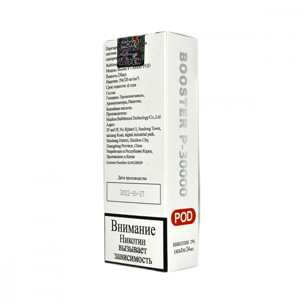 Количество затяжек, шт15000 | ЛинейкаBubble Mon 15000 | Обьем жидкости, мл24 |