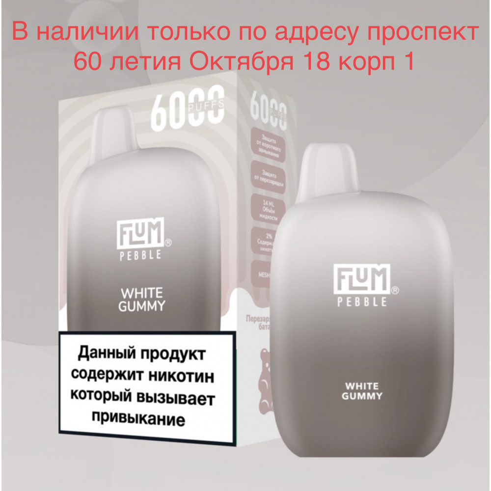 FLUM видыPebble | FLUM вкусыБелые Мармеладные Мишки Гамми | FLUM количество в блоке10 шт |