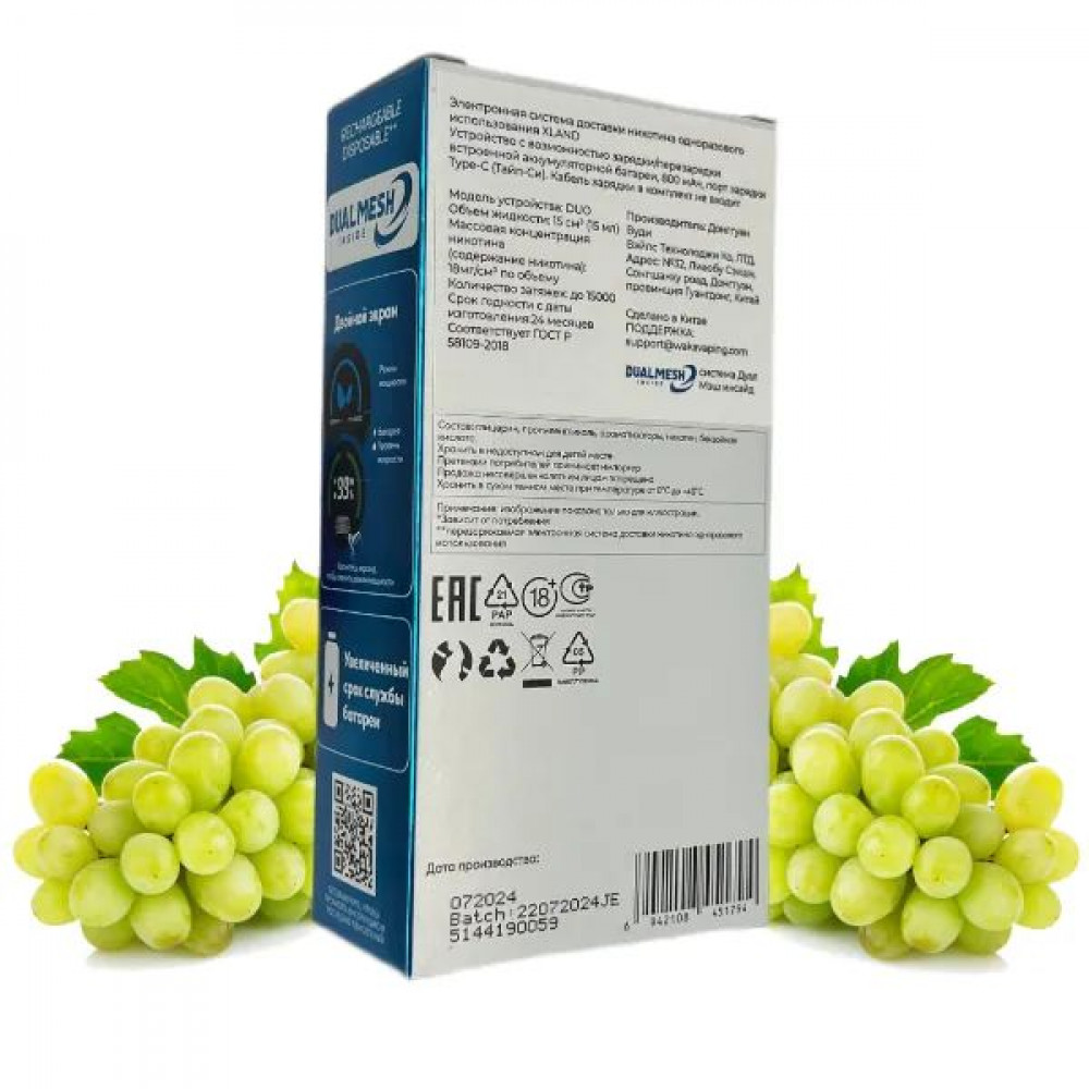 Аромат/вкусЗелёный виноград | БрендWAKA | ДисплейLed |