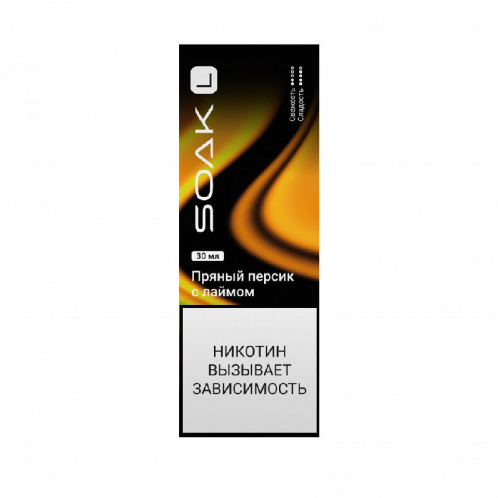 Аромат/вкусПряный персик с лаймом | Баланс VG/PG50/50 | БрендSoak |